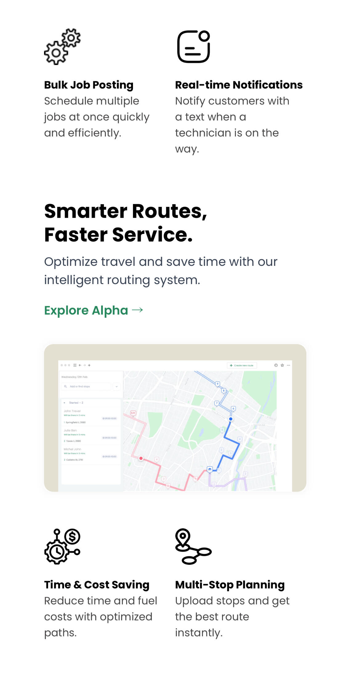 In field service, every minute counts. Office staff juggle endless calls and manual processes while technicians lose time waiting for updates. FieldAlpha, powered by an advanced AI Agent, transforms operations.Our platform delivers intelligent scheduling, live job tracking, automated customer communications, and seamless field management solutions—empowering your team to scale efficiently without the chaos.From HVAC and plumbing to renovations and repairs, FieldAlpha enhances productivity, accelerates response times, and eliminates administrative bottlenecks.